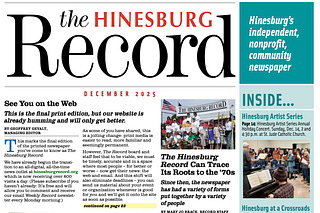 The Hinesburg Record's final print issue is in the mail. We are sorry to end the newspaper, but we believe we can serve you better here, on our website…