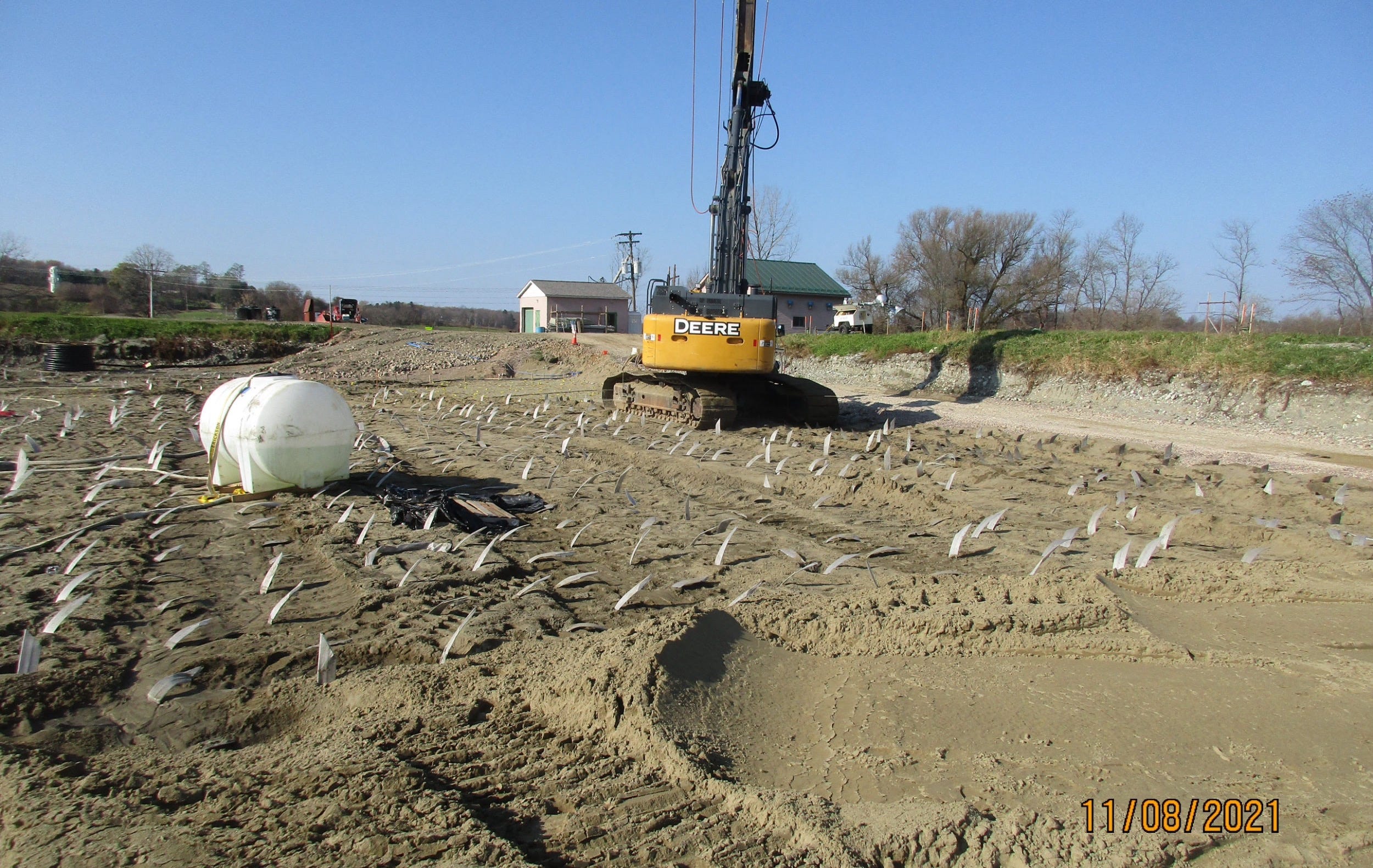 PVC pipes – wick drains, as they were called – were then inserted into the wet clay to draw out the water as tons upon tons of sand were brought in and dumped on top of the clay to squeeze the water out it. It was a long process, but finally the ground was solid enough to support the new plant.
