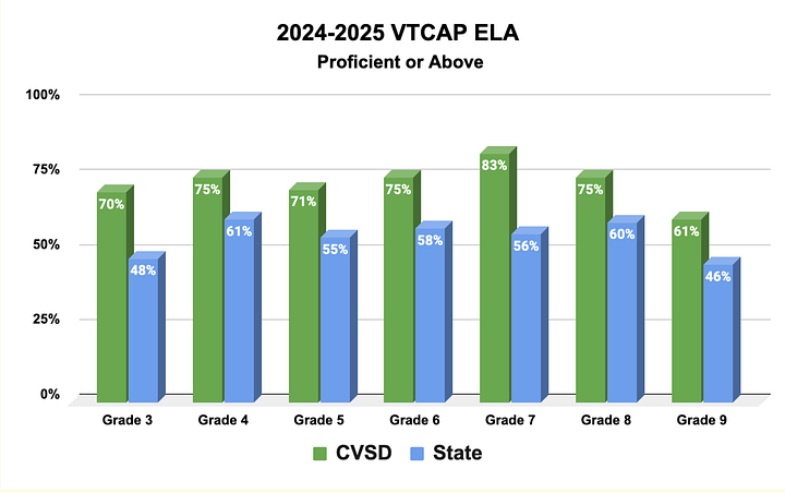“Our 7th graders performed especially well: 83 percent were proficient or above on the VTCAP ELA assessment.