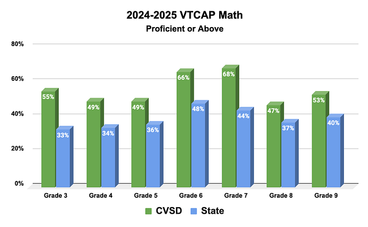 “87 percent of CVSD third graders were proficient or above in literacy on the 2025 spring i-Ready assessment; 70 percent were proficient or above in math.