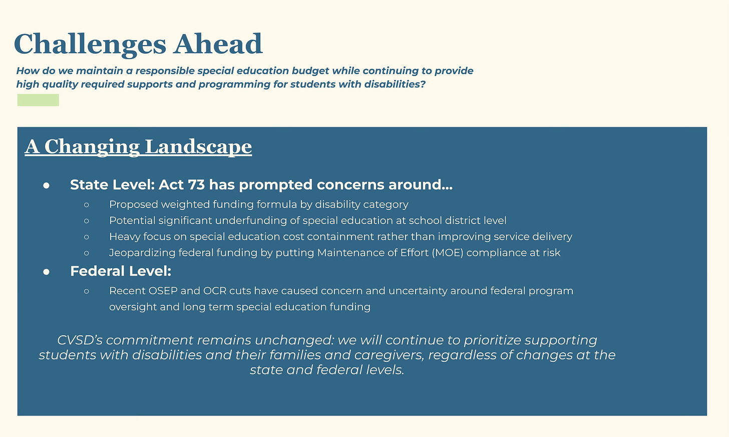 Bunting and his staff are, in essence, making the same case with the CVSD board that they will eventually have to also make to voters: CVSD must have a “level-service” FY2027 budget to continue to offer what they are offering the students.