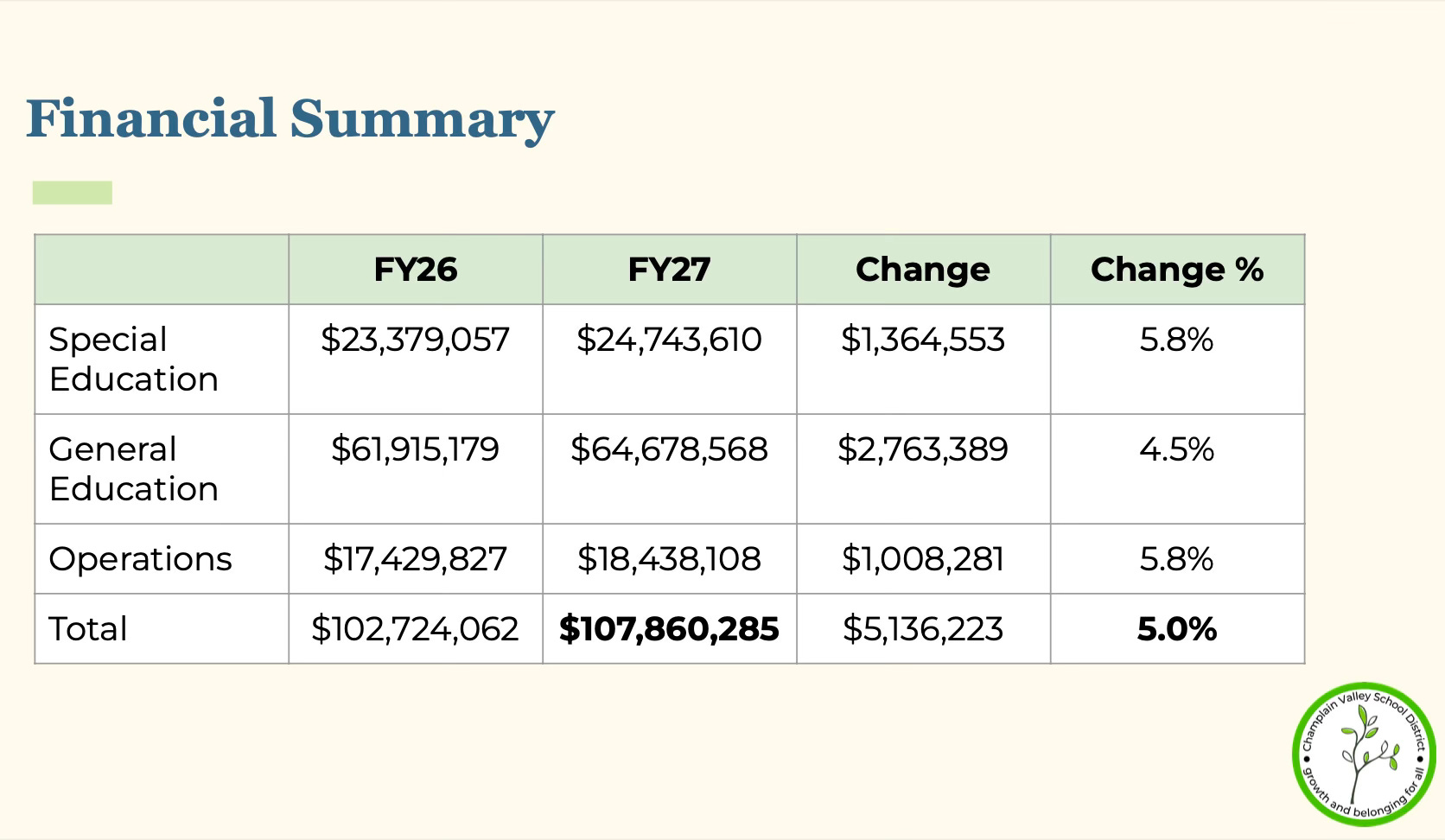 So while the district’s current FY2027 budget shows a five percent increase in dollars over last year’s budget, that doesn’t necessarily mean that Hinesburg’s tax rate is going up by a like amount.