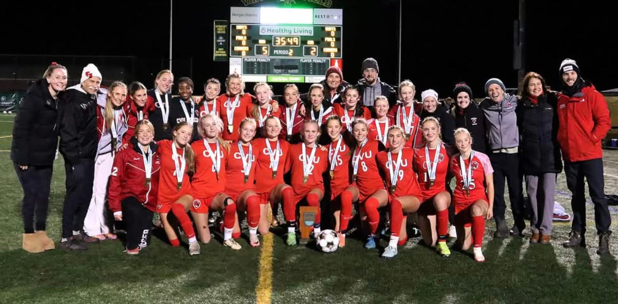 The CVU girls soccer team soundly defeated Colchester 5-2 Saturday afternoon to take the Vermont Division I state championship. It was the 22nd championship for CVU girls soccer, most ever in the state.