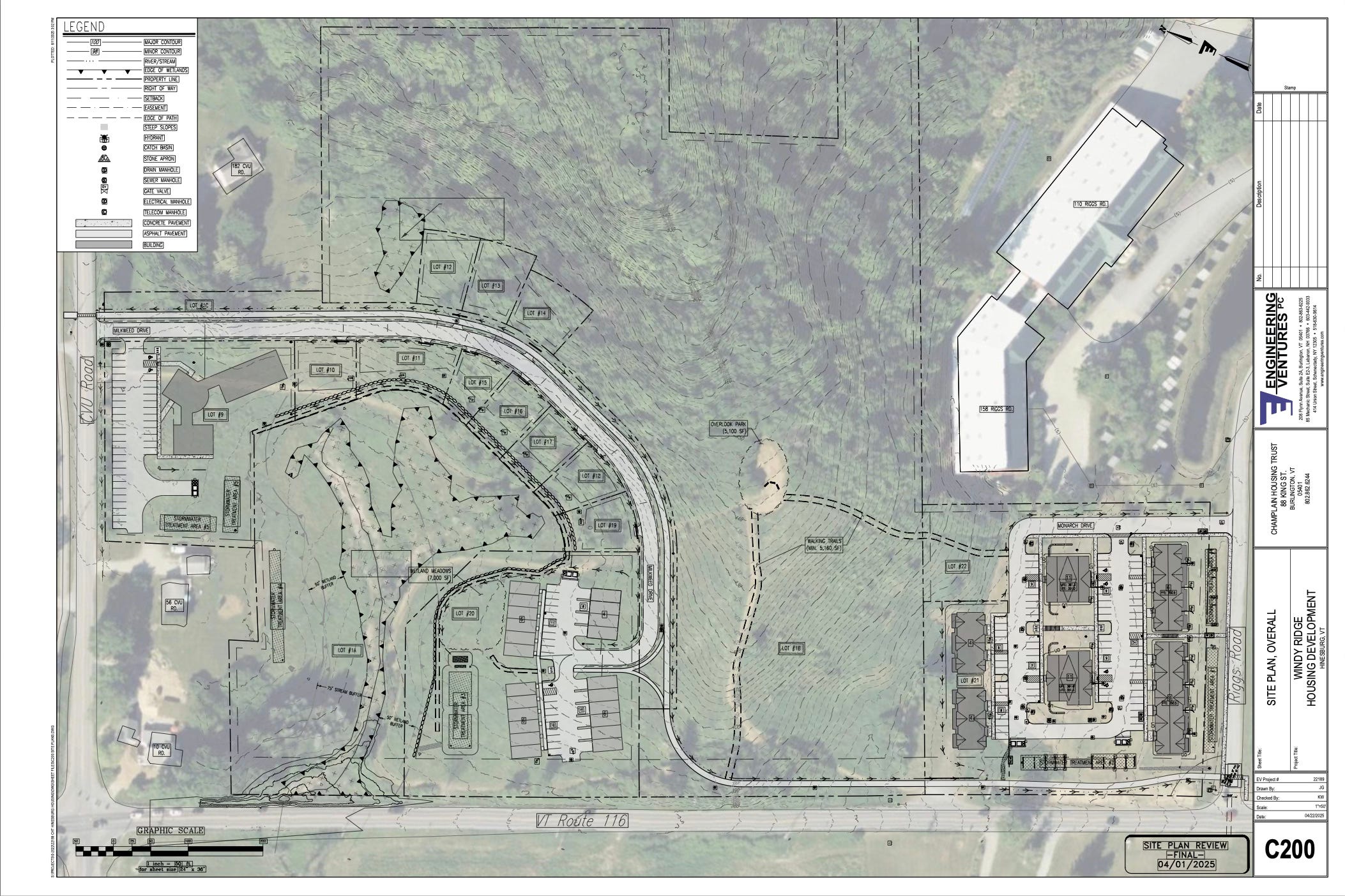 The Windy Ridge development, being undertaken in partnership with the Green Mountain Habitat for Humanity, would include a day care center, 10 market-rate homes, 30 affordable homes and 36 affordable rental units. The project would be located on land that stretches between CVU Road and the north side of Riggs Road (the entrance to NRG) on the east side of Rte. 116. (Windy Ridge, if approved, will be directly across from the Haystack development which has received final approval and was expected to begin this year.)