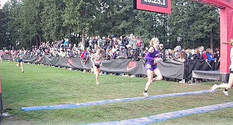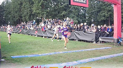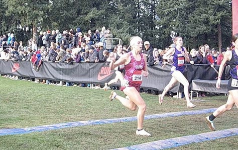 And here’s their finish: McNabb; Charlotte Crum, 19:19.6 (113); Lydia Donahue, 19:25.1 (119); Audrey Neilson, 19:29.9 (128); Maddie Deyo, 19:44.4 (138); and Livi Neilson, 21:16.5 (190).