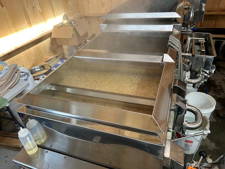 He estimated making over 100 gallons of syrup this year, most of which he’s able to sell through friends, family, and people who stopped by after seeing the Visitors Welcome sign out front.