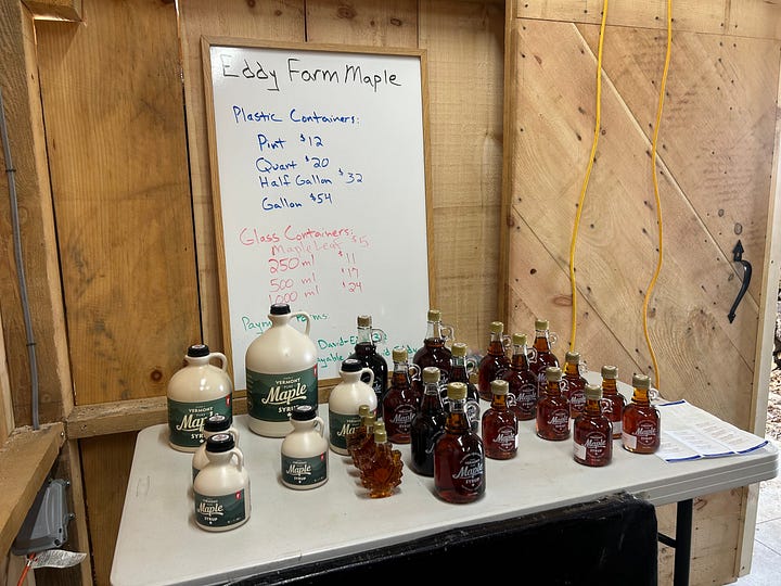 “Four years ago, I started putting up some [tap] lines in my woods. So for the first three years, I just simply sold sap to another sugarmaker,” Eddy said.