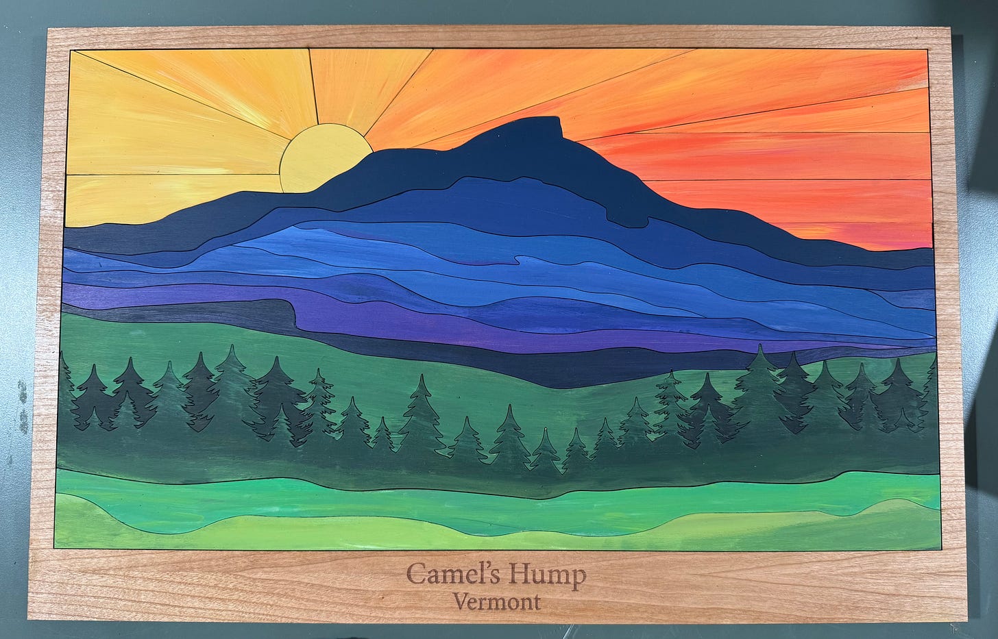 We’re excited to introduce our newest instructor and talented local artist, Kara Janaro, owner of 3rd & Elm Co. Kara brings Vermont’s most iconic landscapes to life through a unique process of laser-cut wood layered and hand-painted into stunning, one-of-a-kind pieces. Choose your favorite scene—Jay Peak, Camel’s Hump, Mount Mansfield, or the Burlington Breakwater Lighthouse—at registration, and join us for a creative evening of connection and painting. Vermont Peaks Paint on Wood Workshops are offered on April 28 and May 20.