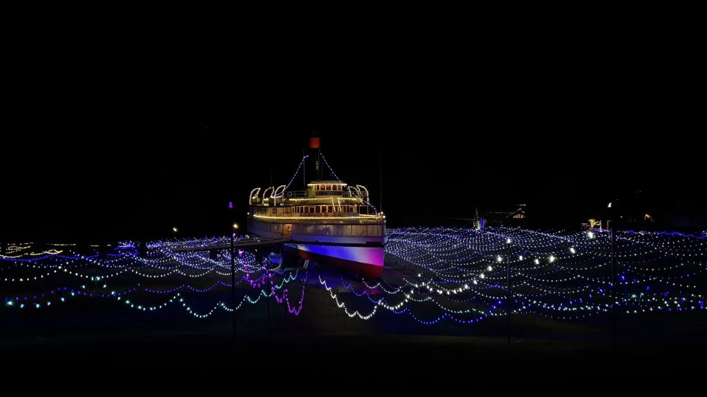 It is something to see the Ticonderoga all lit up. It almost looks like it is ready to leave port. Shelburne Museum’s fifth annual light show has begun and all proceeds support the unique museum. The grounds will be filled with all sorts of lights displays as well as musicians and dancers. Special rates for carloads. Full Story.