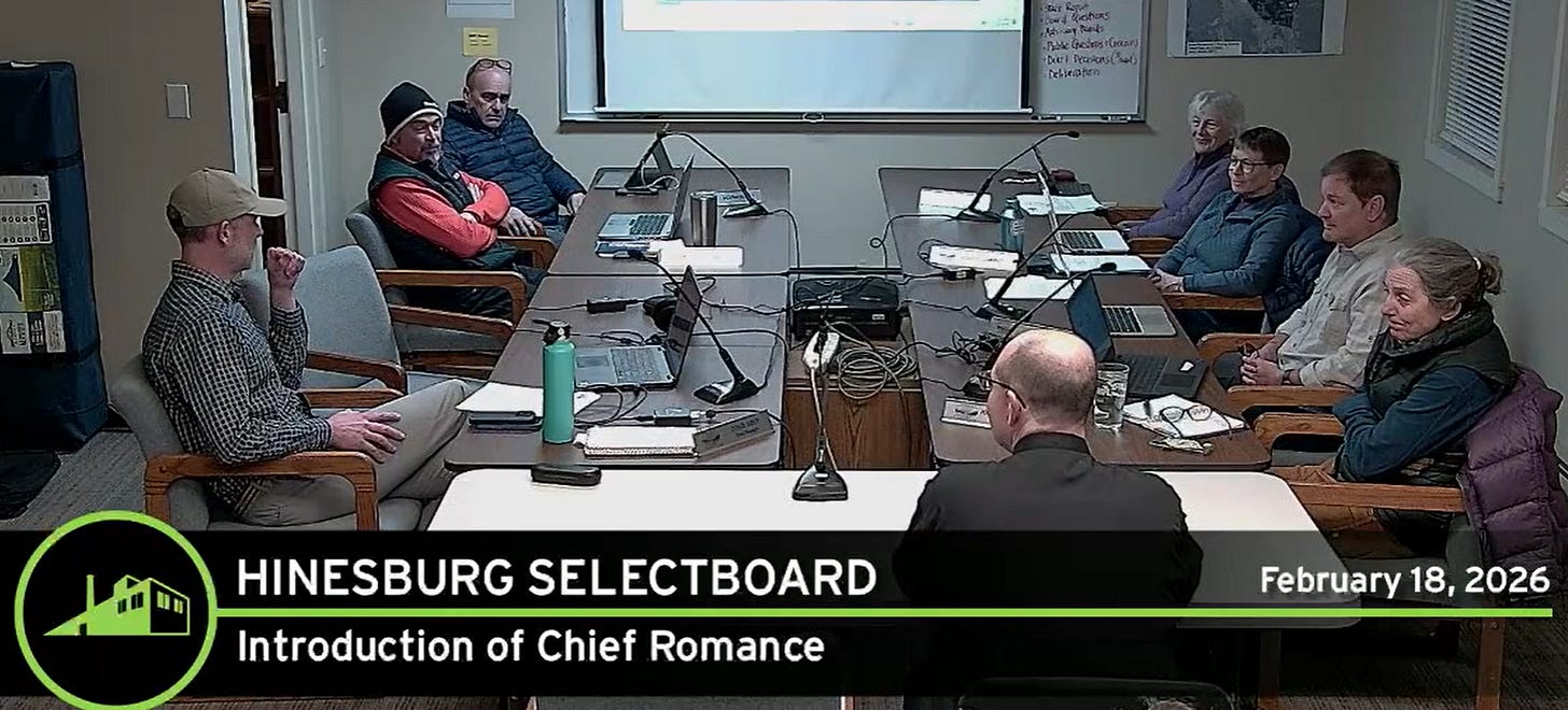 The selectboard met on Feb. 18. The selectboard was introduced to the new police chief, there was a discussion of the Hinesburg Nursery School building, a Windy Ridge funding proposal, and an ICE resolution discussion. Full article here.