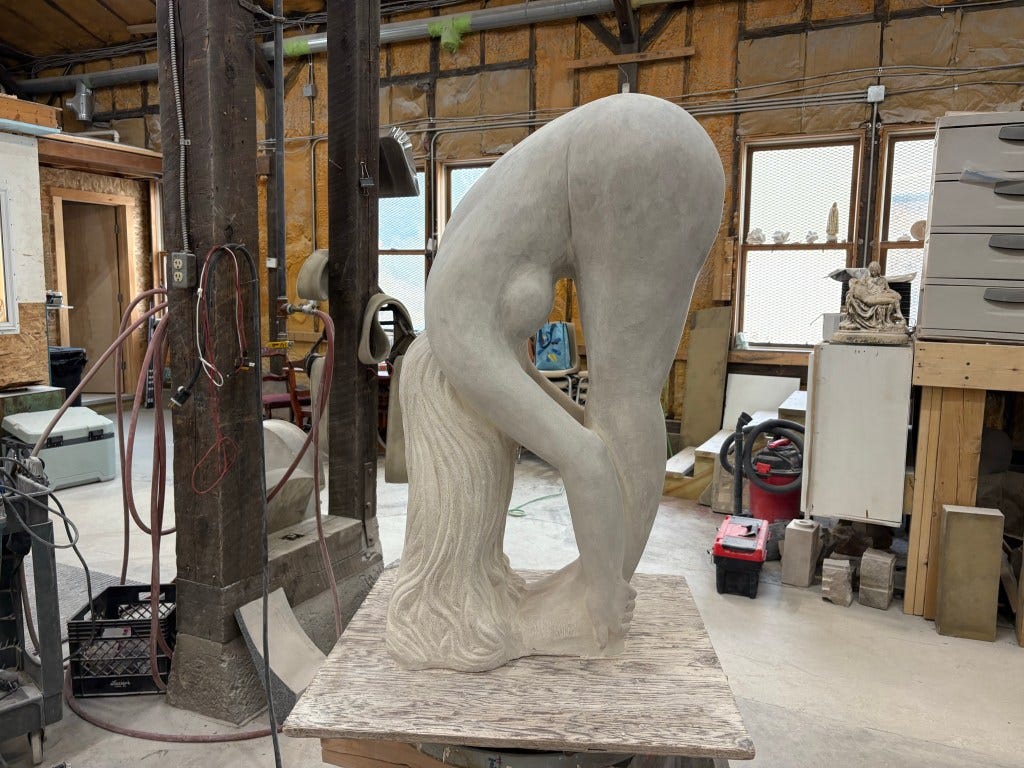 As a young artist, she worked in a lot of different mediums – fiberglass, wood, plaster – but she’d never thought about carving stone.